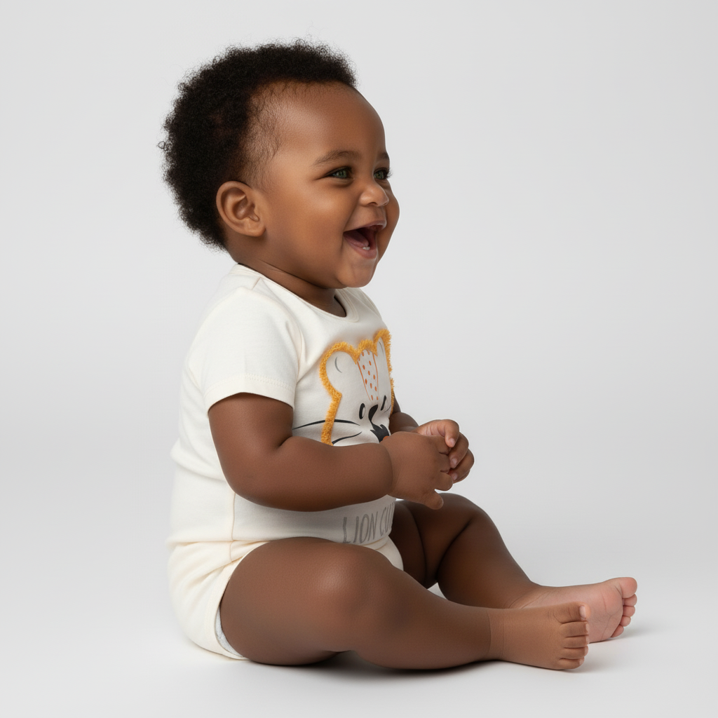 Imagine seu bebê se divertindo com a alegria de um filhote de leão, envolvido em um tecido que proporciona o máximo de carinho. Este macacão é confeccionado em Meia Malha 100% Algodão, garantindo um toque extra suave, respirável e aconchegante que respeita a pele delicada do bebê. Na charmosa cor marfim, ele se torna uma peça versátil e atemporal no guarda-roupa infantil.