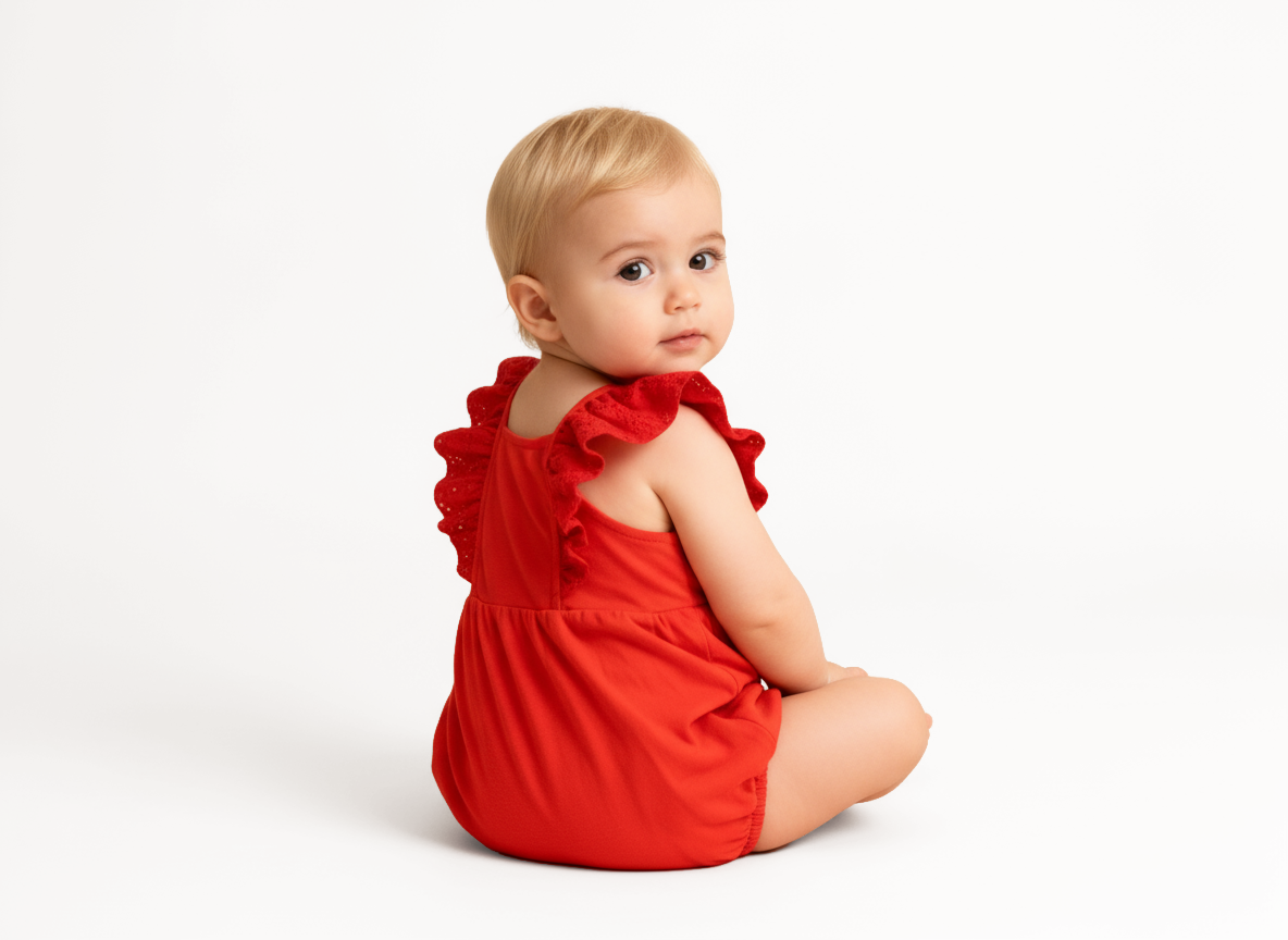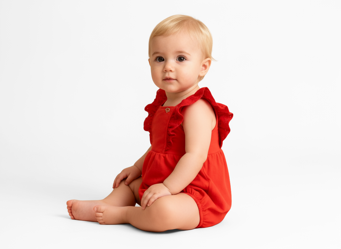 Vista sua pequena com a peça mais desejada das festas! O Macacão curto em Cotton Flamê Vermelho é a escolha perfeita para arrasar no Natal, Réveillon e em todos os momentos especiais de final de ano.