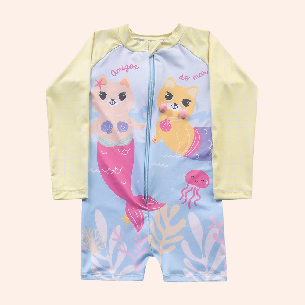 Macacão Infantil Proteção UV | Gata Sereia Amigos do Mar